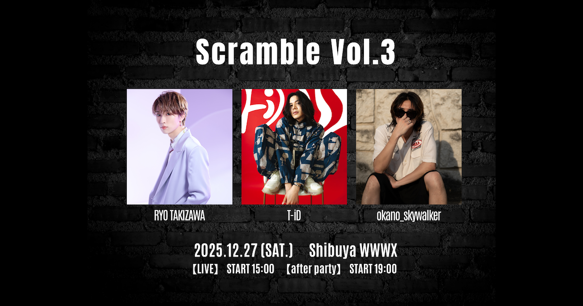 - scramble vol.3:¥7,700 / ¥8,250(税込 / スタンディング / ドリンク代別)
